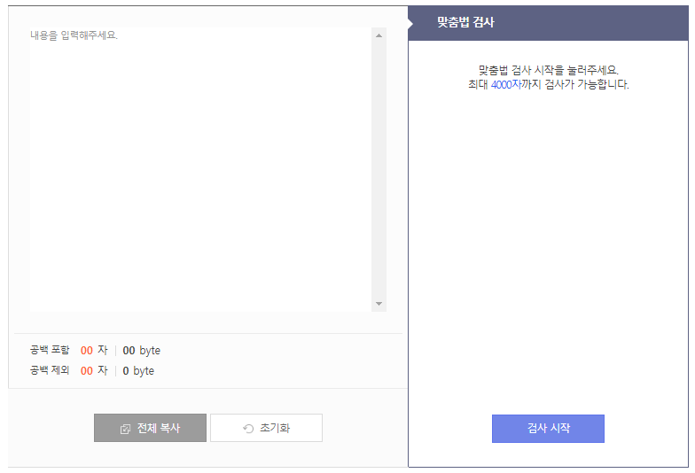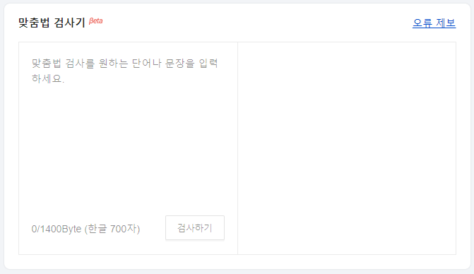 네이버에서 서비스하는 맞춤법 검사기입니다. 한 번에 검사가 가능한 최대 글자 수는 700자입니다.